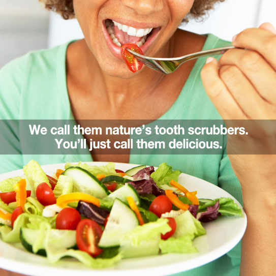 Scrubber foods naturally clean your teeth–not perfectly, but enough to help you smile with confidence. As you chew scrubber foods they remove plaque and leftover particles from other foods you’ve eaten. They also increase saliva flow, which helps clean your mouth as well.